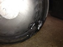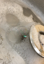 Hier sehen Sie ein undichtes Behälteranschlußteil eines AfG-Behälters. (Blasenbildung)